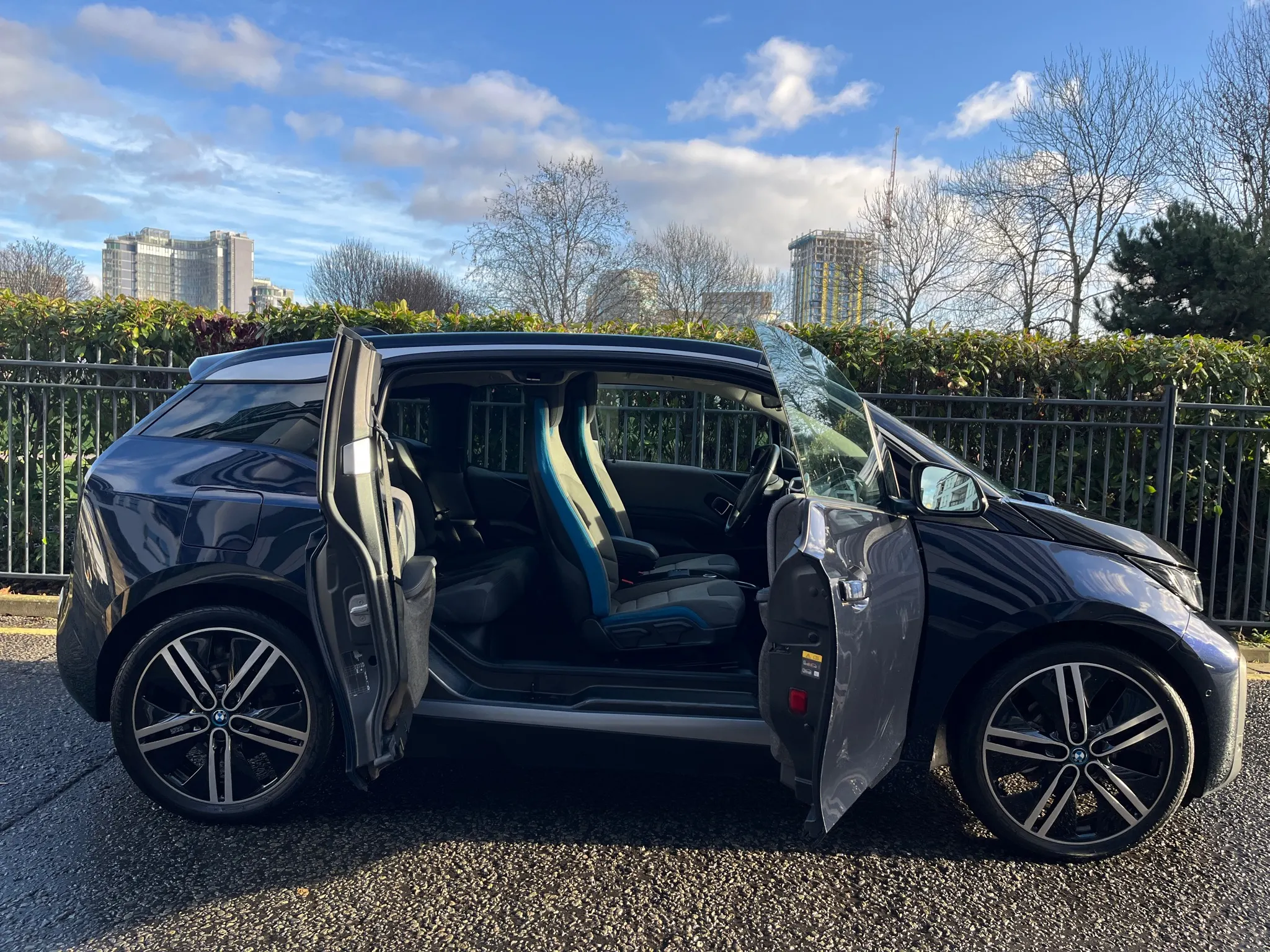 2019 BMW I3 with Latest Battery, Perfect Full BMW Service History and High Spec. Fully Electric with realistic range 150-200m - This particular i3 is packed with Extras including desirable Park Assist Package including front and rear sensors and REAR CAMERA . For an enhanced audio experience, it includes the Loudspeaker System from HARMAN KARDON, also has 20inch ALLOYS, Rear Privacy Glass, Enhanced Blue Tooth, PLUS RARE FACTORY APPLE CAR PLAY. It also features HEATED SEATS AND POWER FOLD MIRRORS.